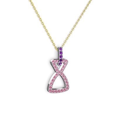 Ametist ve pembe kuvars 925 ayar gümüş kolye (40 cm altın rolo zincir)