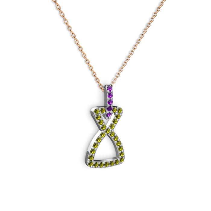 Ametist ve peridot 925 ayar gümüş kolye (40 cm rose altın rolo zincir)