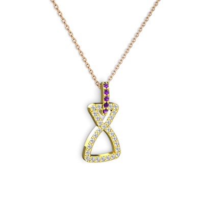 Ametist ve pırlanta 8 ayar altın kolye (0.374 karat, 40 cm rose altın rolo zincir)