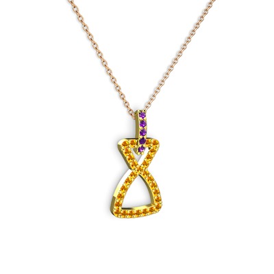 Ametist ve sitrin 925 ayar altın kaplama gümüş kolye (40 cm rose altın rolo zincir)
