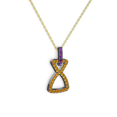 Ametist ve sitrin 925 ayar siyah rodyum kaplama gümüş kolye (40 cm altın rolo zincir)