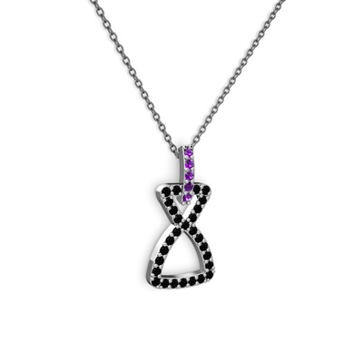 Ametist ve siyah zirkon 18 ayar beyaz altın kolye (40 cm gümüş rolo zincir)