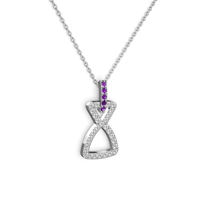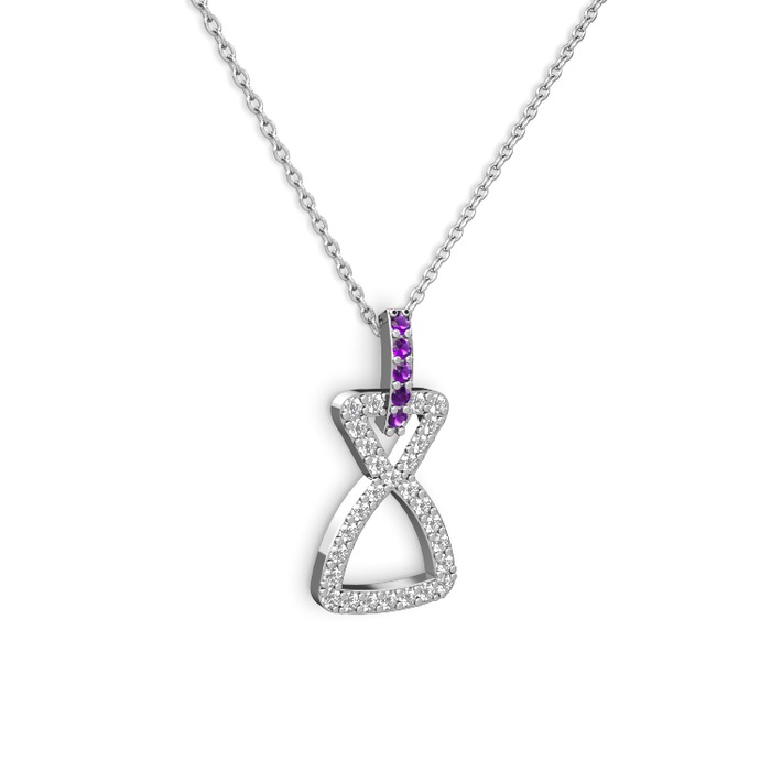 Ametist ve swarovski 18 ayar beyaz altın kolye (40 cm gümüş rolo zincir)