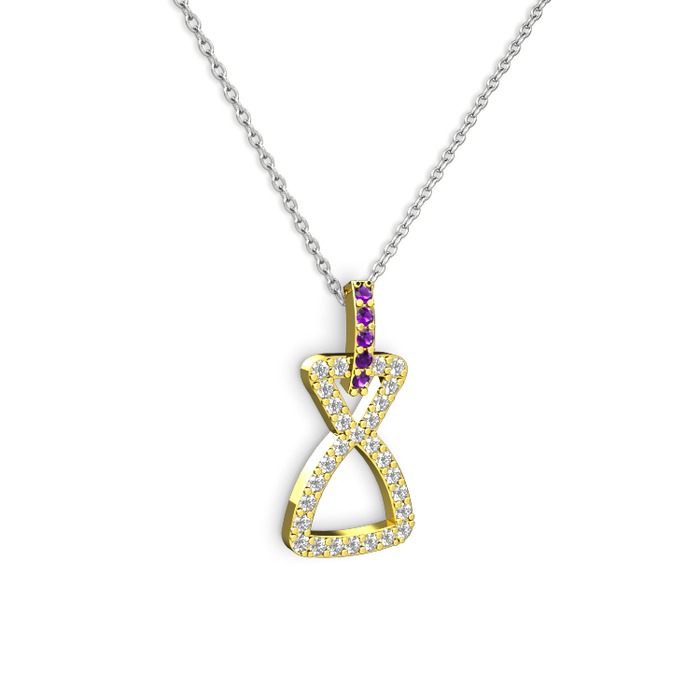 Ametist ve swarovski 925 ayar altın kaplama gümüş kolye (40 cm beyaz altın rolo zincir)