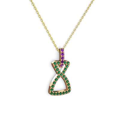 Ametist ve yeşil kuvars 14 ayar rose altın kolye (40 cm altın rolo zincir)