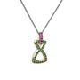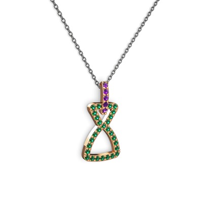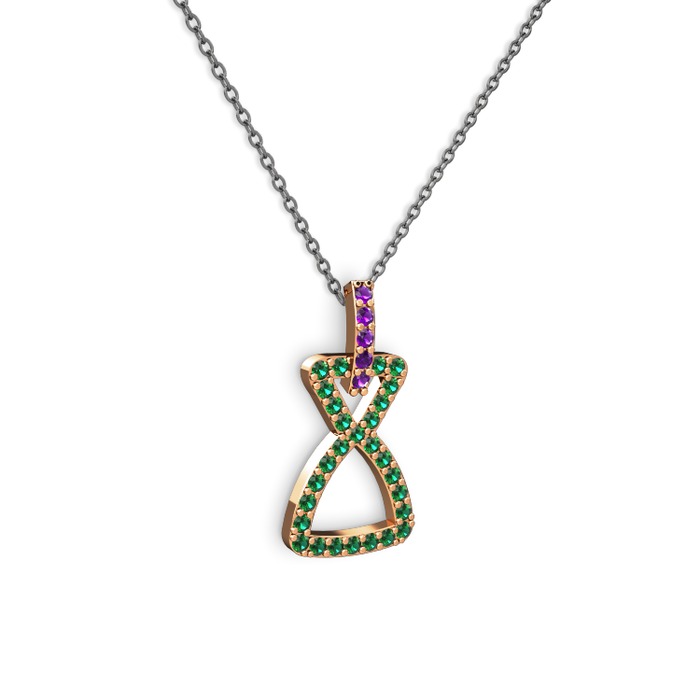 Ametist ve yeşil kuvars 925 ayar rose altın kaplama gümüş kolye (40 cm gümüş rolo zincir)