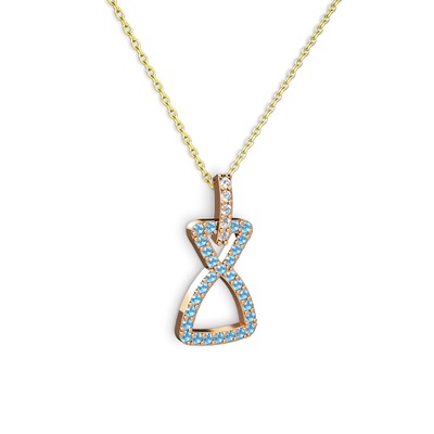 Beyaz zirkon ve akuamarin 925 ayar rose altın kaplama gümüş kolye (40 cm altın rolo zincir)