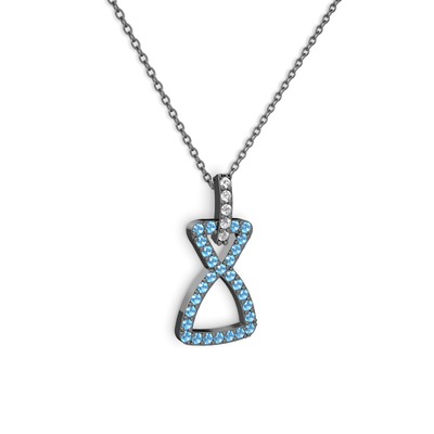 Beyaz zirkon ve akuamarin 925 ayar siyah rodyum kaplama gümüş kolye (40 cm gümüş rolo zincir)