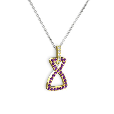 Beyaz zirkon ve ametist 18 ayar altın kolye (40 cm beyaz altın rolo zincir)