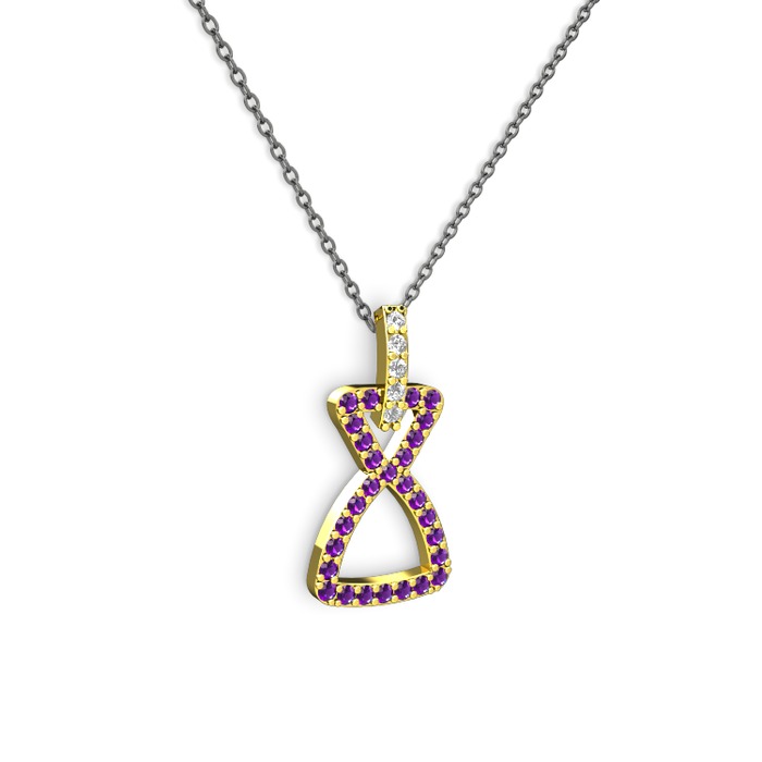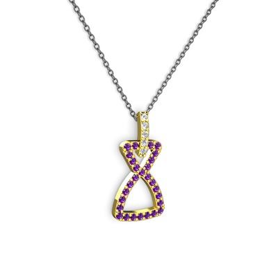 Beyaz zirkon ve ametist 8 ayar altın kolye (40 cm gümüş rolo zincir)