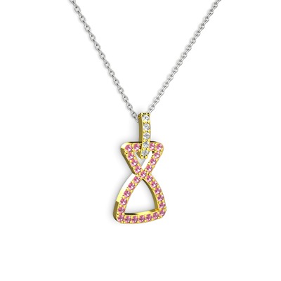 Beyaz zirkon ve pembe kuvars 18 ayar altın kolye (40 cm gümüş rolo zincir)