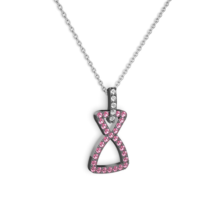 Beyaz zirkon ve pembe kuvars 925 ayar siyah rodyum kaplama gümüş kolye (40 cm beyaz altın rolo zincir)