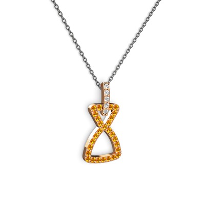 Beyaz zirkon ve sitrin 14 ayar rose altın kolye (40 cm gümüş rolo zincir)