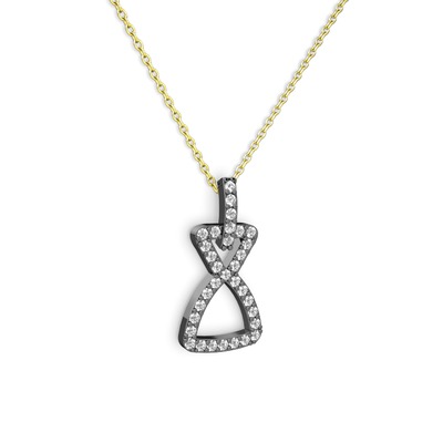 Beyaz zirkon 925 ayar siyah rodyum kaplama gümüş kolye (40 cm altın rolo zincir)
