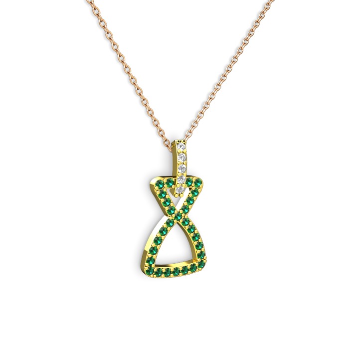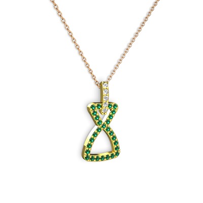 Beyaz zirkon ve yeşil kuvars 18 ayar altın kolye (40 cm rose altın rolo zincir)