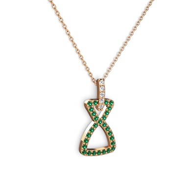 Beyaz zirkon ve yeşil kuvars 18 ayar rose altın kolye (40 cm rose altın rolo zincir)