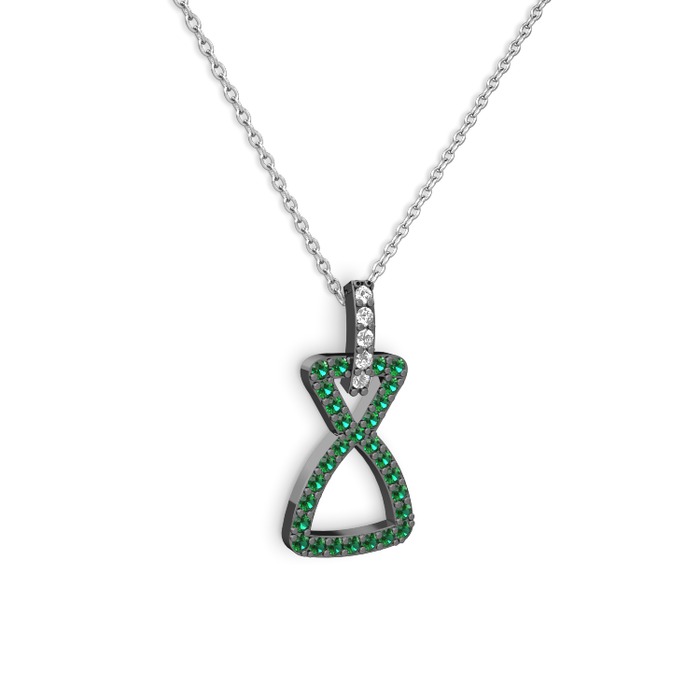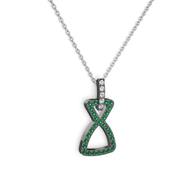 Beyaz zirkon ve yeşil kuvars 925 ayar siyah rodyum kaplama gümüş kolye (40 cm beyaz altın rolo zincir)