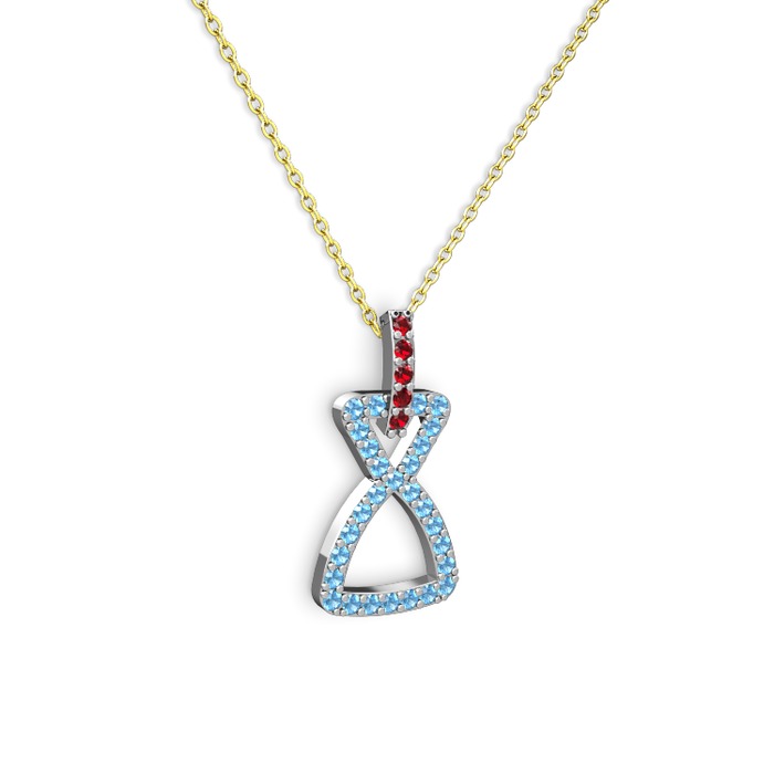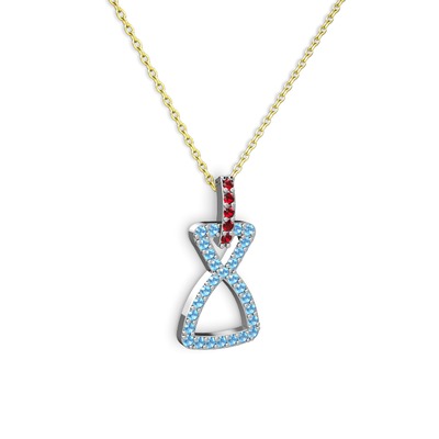 Garnet ve akuamarin 8 ayar beyaz altın kolye (40 cm altın rolo zincir)