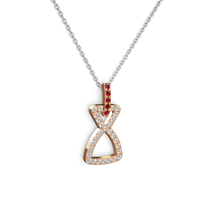 Garnet ve beyaz zirkon 925 ayar rose altın kaplama gümüş kolye (40 cm beyaz altın rolo zincir)