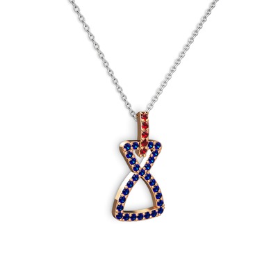 Garnet ve lab safir 14 ayar rose altın kolye (40 cm beyaz altın rolo zincir)