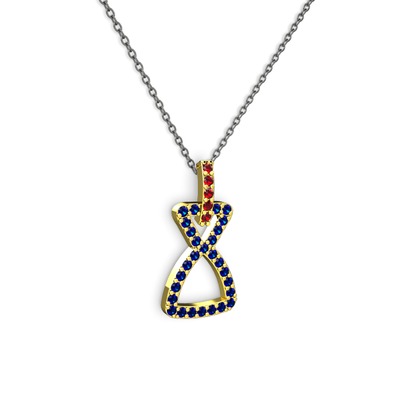Garnet ve lab safir 8 ayar altın kolye (40 cm gümüş rolo zincir)