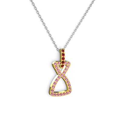 Garnet ve pembe kuvars 14 ayar altın kolye (40 cm gümüş rolo zincir)
