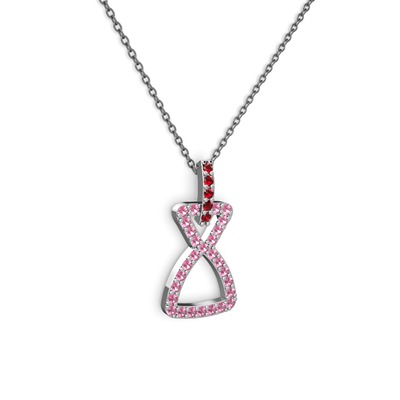 Garnet ve pembe kuvars 14 ayar beyaz altın kolye (40 cm gümüş rolo zincir)