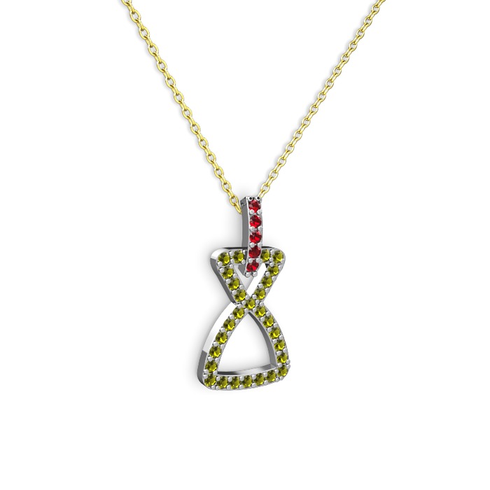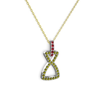 Garnet ve peridot 18 ayar beyaz altın kolye (40 cm altın rolo zincir)