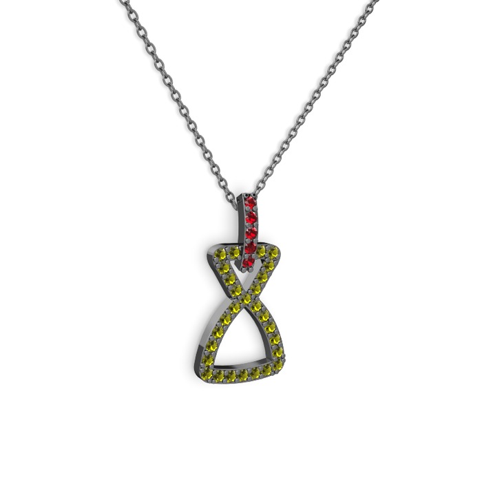 Garnet ve peridot 925 ayar siyah rodyum kaplama gümüş kolye (40 cm gümüş rolo zincir)