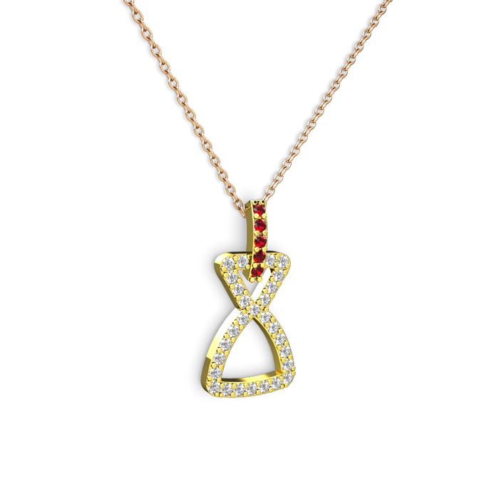 Garnet ve pırlanta 18 ayar altın kolye (0.374 karat, 40 cm rose altın rolo zincir)