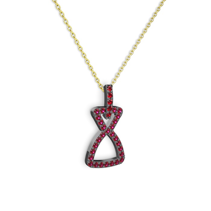 Garnet ve rodolit garnet 925 ayar siyah rodyum kaplama gümüş kolye (40 cm altın rolo zincir)