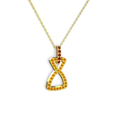 Garnet ve sitrin 925 ayar altın kaplama gümüş kolye (40 cm gümüş rolo zincir)