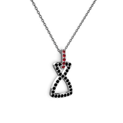 Garnet ve siyah zirkon 8 ayar beyaz altın kolye (40 cm gümüş rolo zincir)