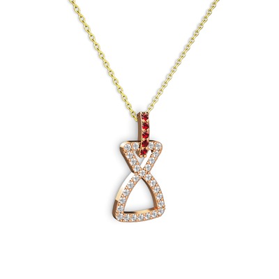 Garnet ve swarovski 8 ayar rose altın kolye (40 cm gümüş rolo zincir)