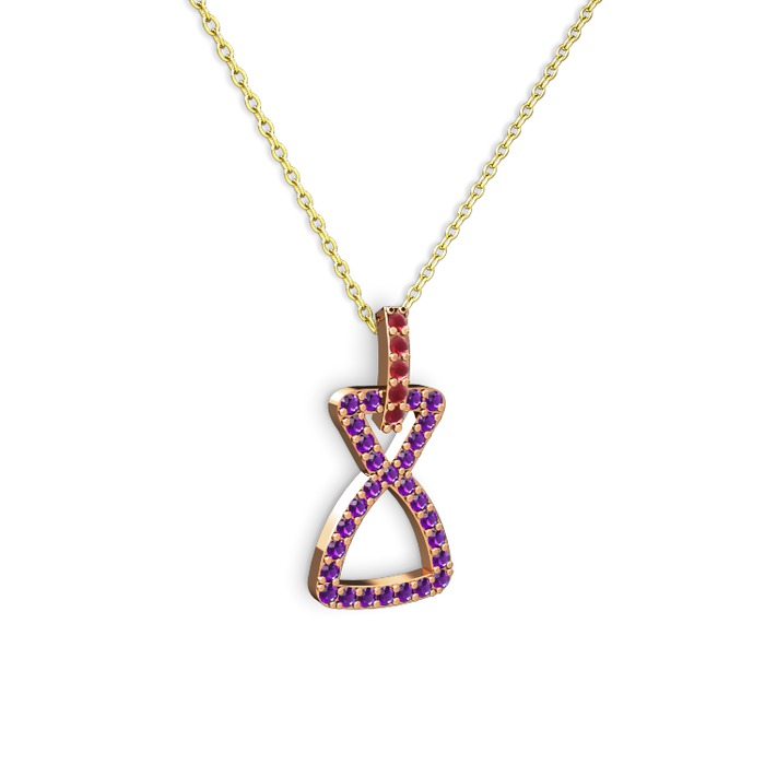 Kök yakut ve ametist 14 ayar rose altın kolye (40 cm gümüş rolo zincir)