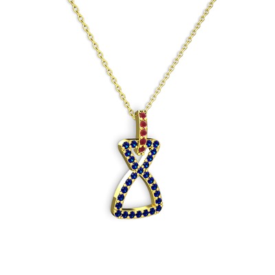 Kök yakut ve lab safir 925 ayar altın kaplama gümüş kolye (40 cm altın rolo zincir)
