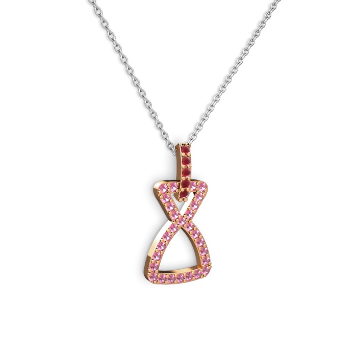 Kök yakut ve pembe kuvars 14 ayar rose altın kolye (40 cm beyaz altın rolo zincir)