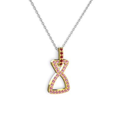 Kök yakut ve pembe kuvars 925 ayar altın kaplama gümüş kolye (40 cm beyaz altın rolo zincir)