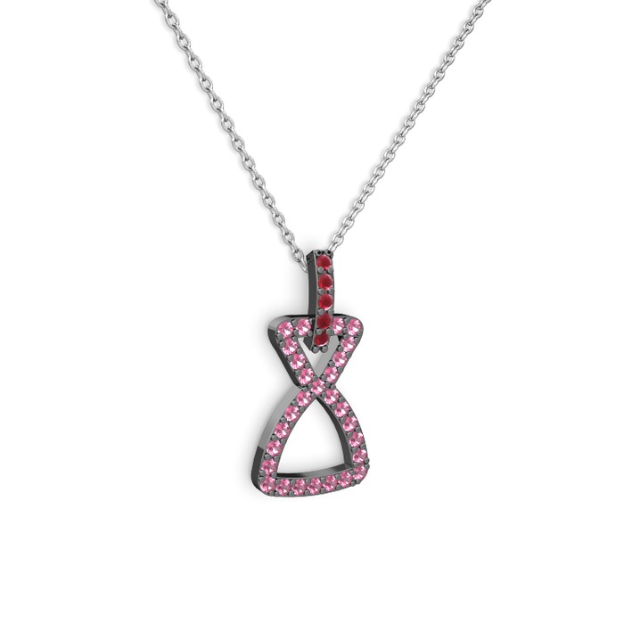 Kök yakut ve pembe kuvars 925 ayar siyah rodyum kaplama gümüş kolye (40 cm beyaz altın rolo zincir)