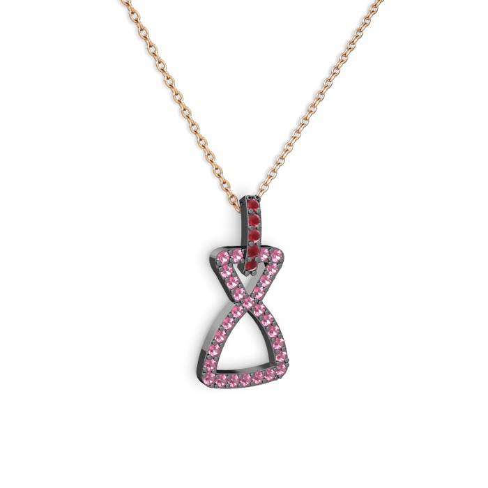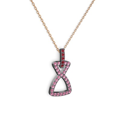 Kök yakut ve pembe kuvars 925 ayar siyah rodyum kaplama gümüş kolye (40 cm rose altın rolo zincir)