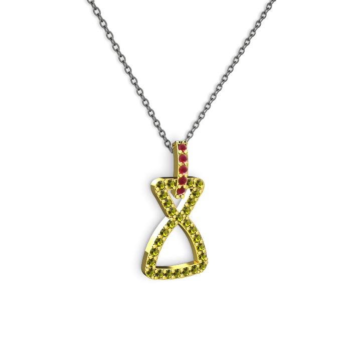 Kök yakut ve peridot 925 ayar altın kaplama gümüş kolye (40 cm gümüş rolo zincir)