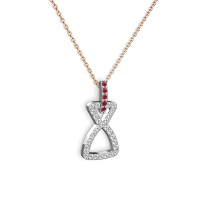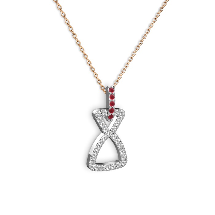 Kök yakut ve pırlanta 18 ayar beyaz altın kolye (0.374 karat, 40 cm rose altın rolo zincir)