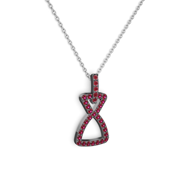 Kök yakut ve rodolit garnet 925 ayar siyah rodyum kaplama gümüş kolye (40 cm gümüş rolo zincir)