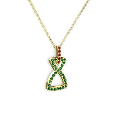 Kök yakut ve yeşil kuvars 14 ayar altın kolye (40 cm altın rolo zincir)