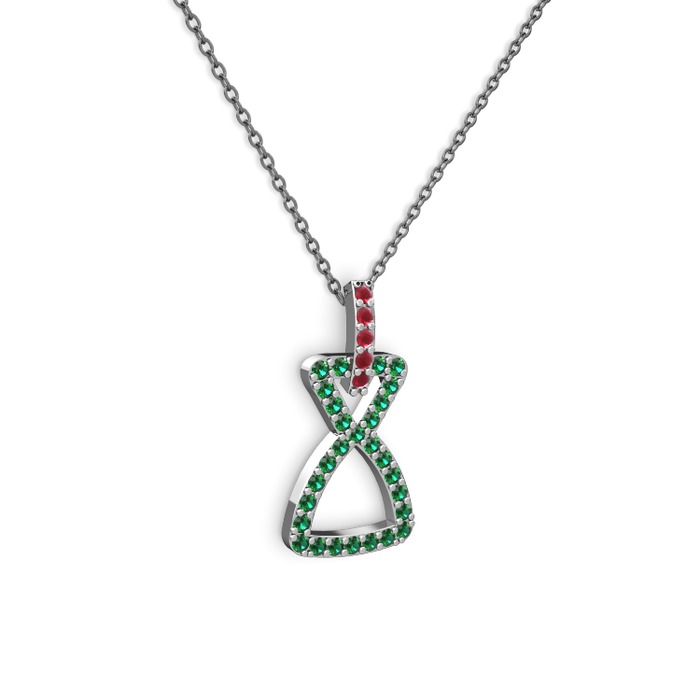 Kök yakut ve yeşil kuvars 14 ayar beyaz altın kolye (40 cm gümüş rolo zincir)
