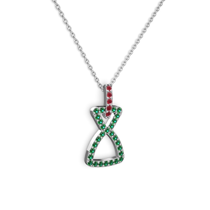 Kök yakut ve yeşil kuvars 8 ayar beyaz altın kolye (40 cm beyaz altın rolo zincir)