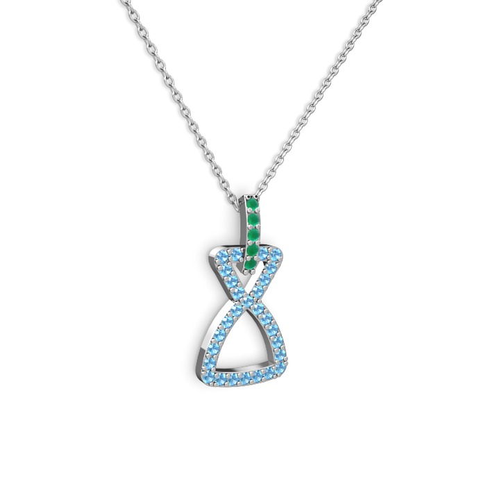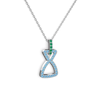 Kök zümrüt ve akuamarin 14 ayar beyaz altın kolye (40 cm beyaz altın rolo zincir)