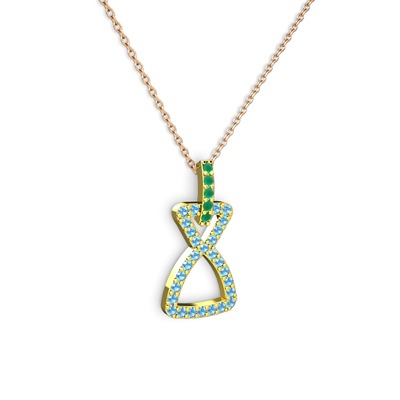 Kök zümrüt ve akuamarin 8 ayar altın kolye (40 cm gümüş rolo zincir)