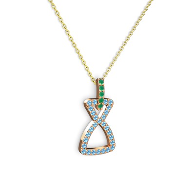 Kök zümrüt ve akuamarin 8 ayar rose altın kolye (40 cm altın rolo zincir)