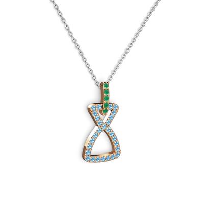 Kök zümrüt ve akuamarin 8 ayar rose altın kolye (40 cm gümüş rolo zincir)